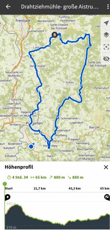 Deine Fahrt beginnt bei der Drahtziehmühle und führt dich hinein in unseren malerischen Ort St. Oswald. Das Rad schlängelt sich sanft den Weg hinauf, vorbei an Feldern und Wiesen, bis du den Braunberg erreichst. Hier oben hast du einen herrlichen Blick, bevor du auf einem idyllischen Wiesenweg nach March weiterrollst. Der Abstieg nach Neudorf ist ein Erlebnis für sich – ruhig, mit kleinen Kurven, vorbei an Wäldern und Feldern, bis du Amesreith erreichst. Von hier aus führt dich ein Waldweg hinunter zum Stampfenbach. Nimm dir Zeit, denn diese Strecke ist kein Ort für schnelle Abfahrten; der Weg fordert deine Aufmerksamkeit und Respekt. Nach der Erholung im Stampfental rollst du gemütlich weiter, entlang des wenig befahrenen Waldaisttals. Auf einem steilen aber wunderschönen Güterweg erreichen wir Gutau und über Erdmannsdorf erreichen wir Harterleiten. Weiter geht es nach Kefermarkt, wo du die berühmte Kirche mit dem prächtigen Flügelaltar bewundern kannst. Dann folgt die Fahrt entlang der Eisenbahn bis zur Haltestelle Lasberg. Nach einem kurzen Anstieg führt die Straße wieder auf den bekannten Güterweg nach Lasberg, der dich schließlich zurück zur Drahtziehmühle bringt.Eine abwechslungsreiche Tour voller Natur, Geschichte und kleinen Herausforderungen – ein echtes Erlebnis für jeden Radfahrer.